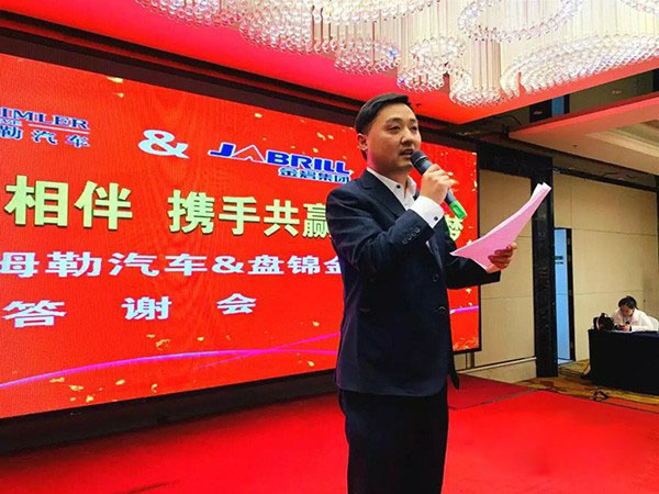 2019年2月26日,以“一路有你,感恩相伴,攜手共贏,同心筑夢(mèng)”為主題的福田戴姆勒&盤錦金碧危化品客戶答謝會(huì)在盤錦瀚新國際酒店順利舉行。此次大會(huì)以危化品價(jià)值鏈一體化解決方案為支點(diǎn),聯(lián)合盤錦金碧專用汽車制造有限公司,在區(qū)域重點(diǎn)危化運(yùn)輸行業(yè)TOP客戶代表、區(qū)域媒體代表等百余人的共同見證下,現(xiàn)場(chǎng)交車200臺(tái),打響東三省危化品業(yè)務(wù)開門紅,促進(jìn)歐曼與金碧整車一體化銷售模式的全面展開!
