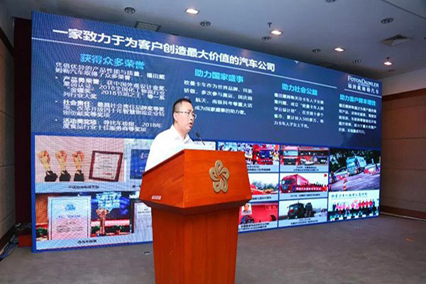北京福田戴姆勒汽車有限公司轎運車高級項目經理李允強講解歐曼新ETX中置軸轎運車