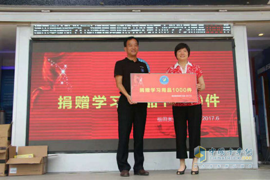 福田輕型商用車事業(yè)本部奧鈴昆明市場部經(jīng)理張細(xì)平先生代表廠家向經(jīng)濟(jì)技術(shù)開發(fā)區(qū)第五小學(xué)捐贈學(xué)習(xí)用品