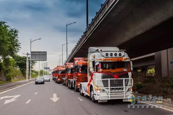 哇,原來是豪華又霸氣的重卡迎親車隊!