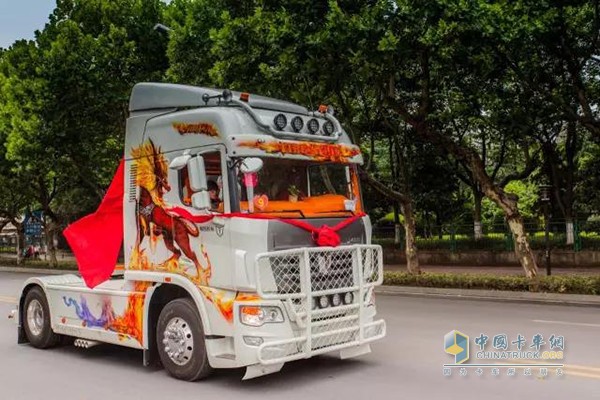 2017年7月1日,朝陽初現,南京市區的街頭,出現了一個浩浩蕩蕩的“霸氣迎親隊伍”,令路人不斷駐足、側目。領頭的婚車很多人都不陌生,它就是大名鼎鼎的聯合卡車“火麒麟”----國內首輛由卡友深度參與改裝的重卡、也是中國第一臺大面積彩繪卡車,曾多次在北京車展、中國卡車公開賽上亮相眾人。