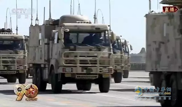 在舉世矚目的中國人民解放軍建軍90周年閱兵式上,陜汽受閱車輛共二個集群(綜合保障群和信息作戰(zhàn)群),五個方隊(戰(zhàn)略支援、裝備保障方隊、后勤保障方隊、信息通訊保障方隊、工程防化保障方隊),十個排面,十型裝備,共計四十輛車,在萬眾矚目下,漸次駛過觀禮臺,圓滿完成任務。
