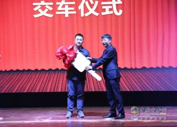 頒獎結(jié)束后,一汽解放汽車銷售有限公司黨委副書記孫明志先生為獅橋公司代表,即京津冀區(qū)域第2萬臺訂單的車主交付了車鑰匙,并表示希望這把承載著豐收與喜悅的鑰匙,能把解放與車主之間的情誼一直傳遞下去。