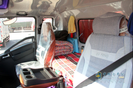 這款G5X中卡內寬2000mm,內長1860mm、內高1530mm,內部空間相比競品大至少15%以上,無論是休息還是車內移動都會順暢很多。再加上這款車采用了駕駛室四點懸浮氣囊以及氣囊座椅,能很大程度的降低來自地面的震動,整車舒適性再上一層。所以在雙11后的高強度工作下,汪海龍并未感覺到疲憊。