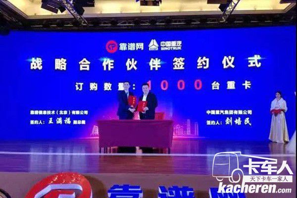 2018年1月16日,在靠譜網廣東省網絡啟動大會上,靠譜網與中國重汽集團簽署戰略合作協議,并簽訂2018年首個千臺大單--訂購1000輛中國重汽豪沃T7H。