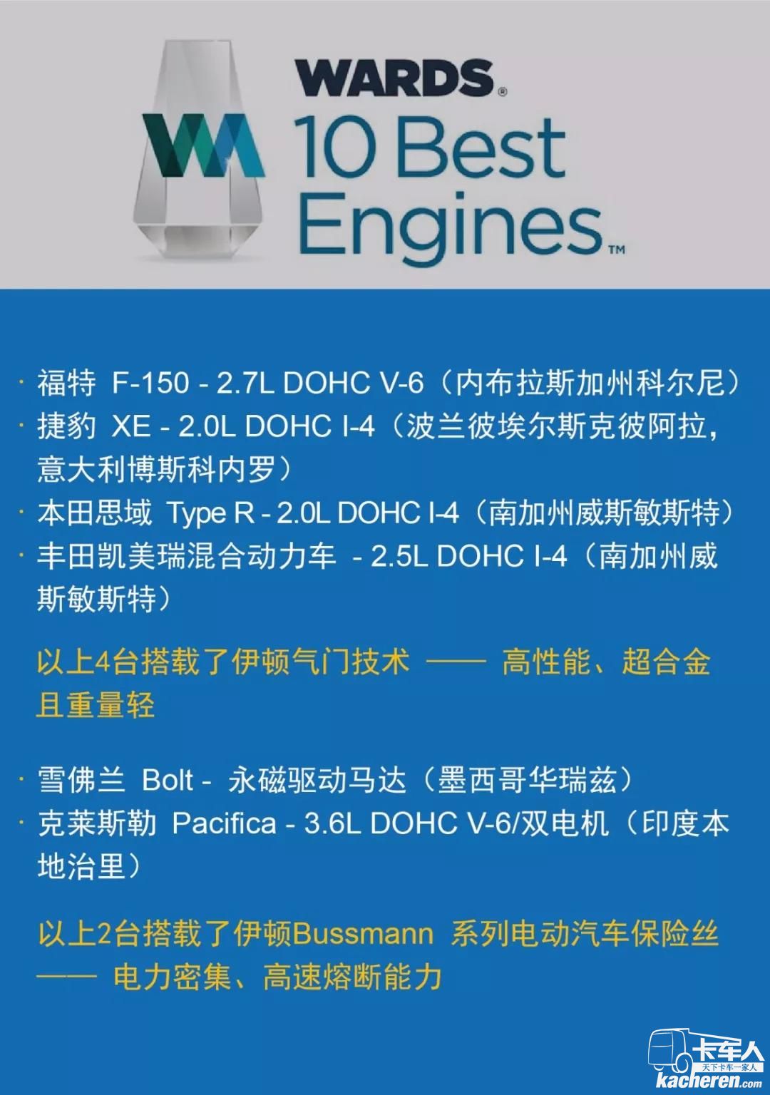 要論世界上最有代表性的發(fā)動機評選活動,唯有“沃德全球十佳汽車發(fā)動機”一直以來倍受關(guān)注,甚至廣大消費群體視他世界發(fā)動機技術(shù)的風(fēng)向標(biāo)。在2018年的評選中,竟有6臺獲獎發(fā)動機使用了伊頓技術(shù)!
