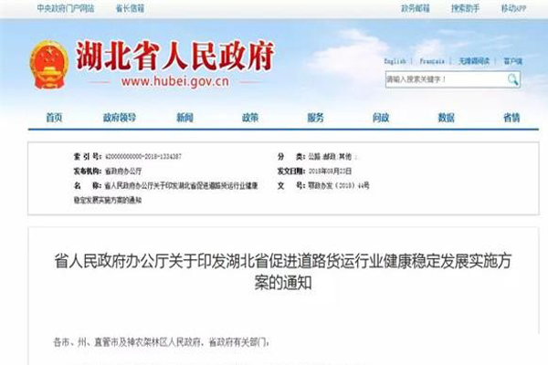 2018年8月23日,湖北省人民政府印發(fā)了《湖北省促進道路貨運行業(yè)健康穩(wěn)定發(fā)展實施方案》。