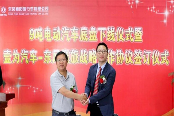 9噸電動汽車底盤下線儀式暨壹為汽車—東風襄陽旅行車公司戰略合作協議簽訂儀式