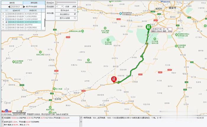 去程在秦嶺這段,120公里大部分為上坡路段,平均車速為52.54km/h,平均氣耗為34.76kg/100km。 由于貨物不重,爬坡路段動力夠用,最低也就用到9檔,下坡液緩很好用,變速箱12檔,液緩三檔位置就能控制車速,非常好使。老劉表示重汽MT13燃氣發動機低速扭矩很充沛,1000-1400的轉速區間里,動力也是隨叫隨到。