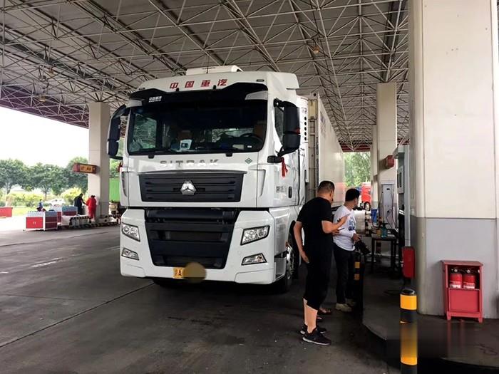 2020年6月份,北京金葉安順通提的兩臺汕德卡LNG牽引車完成上牌,在新車第一趟的時間,金葉安順通的老劉一同進行了首次出車體驗, 也對LNG燃氣車的實際運營進行了一摸次底。