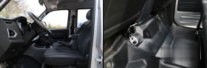 進入祥菱V3駕駛室,最先可以感受到整體空間的擴大,以及儲物空間的優化,充分滿足了卡友日常行車中的儲物需求,雙排車的后排座椅也可掀起擴充置物空間。坐在駕駛位上,與車頂的距離適中,沒有壓迫感,雙排車型的后排空間同樣是平地板的設計,乘坐空間寬敞舒適。座椅采用全鋼骨架,包裹性好,選材上采用布藝和皮質相結合的形式,舒適、柔軟,貼合性更高,駕乘儲物兩相宜,載人拉貨兩不誤。