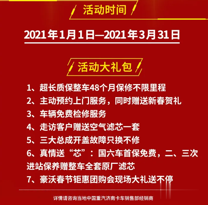 1、購買豪沃系列產品,可享受超長質保及三大總成開蓋故障只換不修政策;