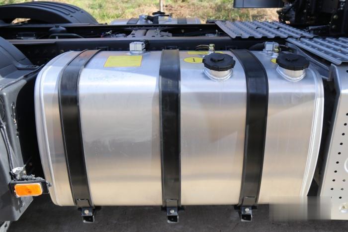 油箱部分,大運旗艦V9車型采用了550+400L的雙油箱,減少加油次數,提升運營效率。并且針對北方用戶冬天用車啟動困難的問題,還采用了雙腔油箱。除了最小的油箱之外,另一個油箱配有油箱加熱功能,冬季只需往小油箱里加注對應溫度的柴油,另兩個可以加注0號柴油。