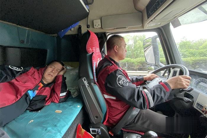 為了防止疲勞駕駛,保證行車安全,兩位師傅每四小時(shí)要換一次班。因此一位師傅在開車時(shí),另一位就在后面的小床鋪上休息,為后面的行程保存精力。在路上的大部分時(shí)間,兩個(gè)搭檔都靜默無言,不僅為了避免打擾對(duì)方休息,還因?yàn)閮扇似綍r(shí)在一起的時(shí)間比彼此的家人還多,早已習(xí)慣這種“歲月靜好”的相處模式。