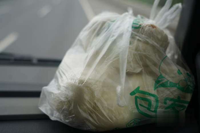 從杭州轉(zhuǎn)運(yùn)中心出發(fā)前,趙菲給兩位師傅準(zhǔn)備了一袋包子,他們這一趟吃了4頓包子。
