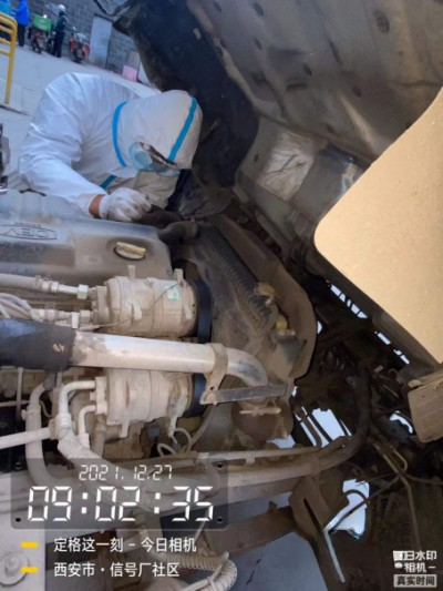 12月25日,奧特森服務站贠站長組織2名服務人員帶上保養所需配件、工具,前往勤得物流公司,為客戶提供上門保養服務。此時的西安,天氣異常寒冷,服務人員厚厚的冬裝外穿著防護服,在鉆車底對車輛進行保養時還需要避免防護服破損。疫情防控刻不容緩,物資運輸不能耽誤,更換機油、機濾,添加防凍液,全車檢查……當2名服務人員完成車輛的保養工作后,貼身的衣服已經被汗水浸透,車隊負責人握住服務人員的手不停地表示感謝。