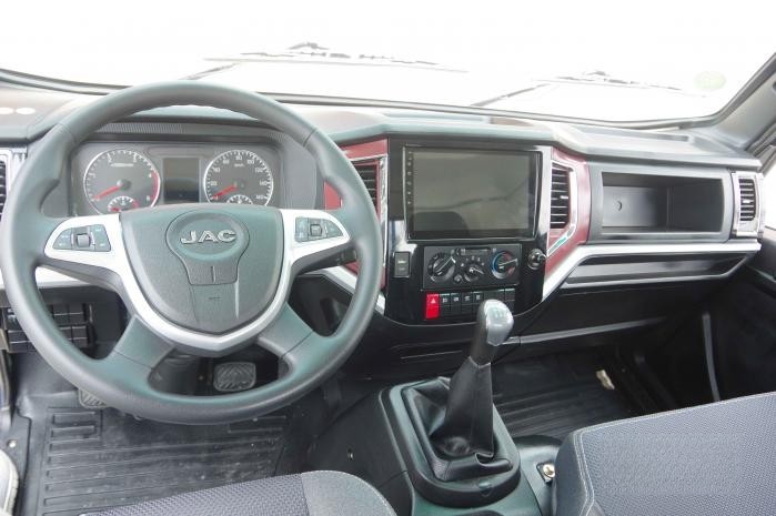 全包內飾的設計更偏向家用車風格,隔音效果好,行駛時噪音比較小。中控臺以簡潔、平直的線條為主,和方正的前臉設計形成呼應。氣囊座椅濾震效果好,長時間駕駛不容易疲憊;雙頂置儲物空間可以輕松容納隨車生活物品,拿取也很方便。多功能方向盤、大尺寸MP5加倒車影像(10.1寸智聯大屏加倒車影像,可鏈接藍牙、手機熱點及wifi,導航、音樂、電影、語音通話隨時享用,并搭載江淮車聯網3.0系統,實現車隊管理、駕駛行為分析、車輛維保管理等功能)、電動車窗、中控鎖、液壓助力轉向等也為駕駛更添一份舒適和安全。