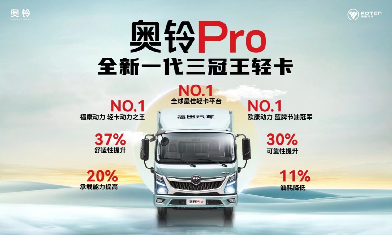 發(fā)布會上亮相的重磅產(chǎn)品——奧鈴Pro,是基于百萬奧鈴大數(shù)據(jù),鏈合全球領(lǐng)先科技,融匯中國商用車企業(yè)集體智慧結(jié)晶,全新推出的奧鈴第五代輕卡平臺,其定位為“全新一代三冠王輕卡”,即制造冠軍、品質(zhì)冠軍和單一品牌銷量冠軍,以“冠軍品質(zhì)”為用戶提供高品質(zhì)產(chǎn)品。